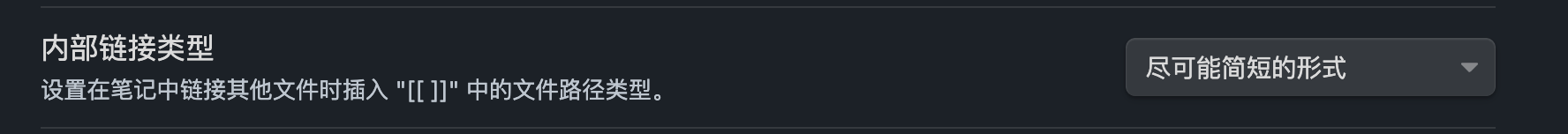 • 在其中的「内部链接类型(New link format)」选项中,选择「基于当前笔记的相对路径(Relative path to file)」